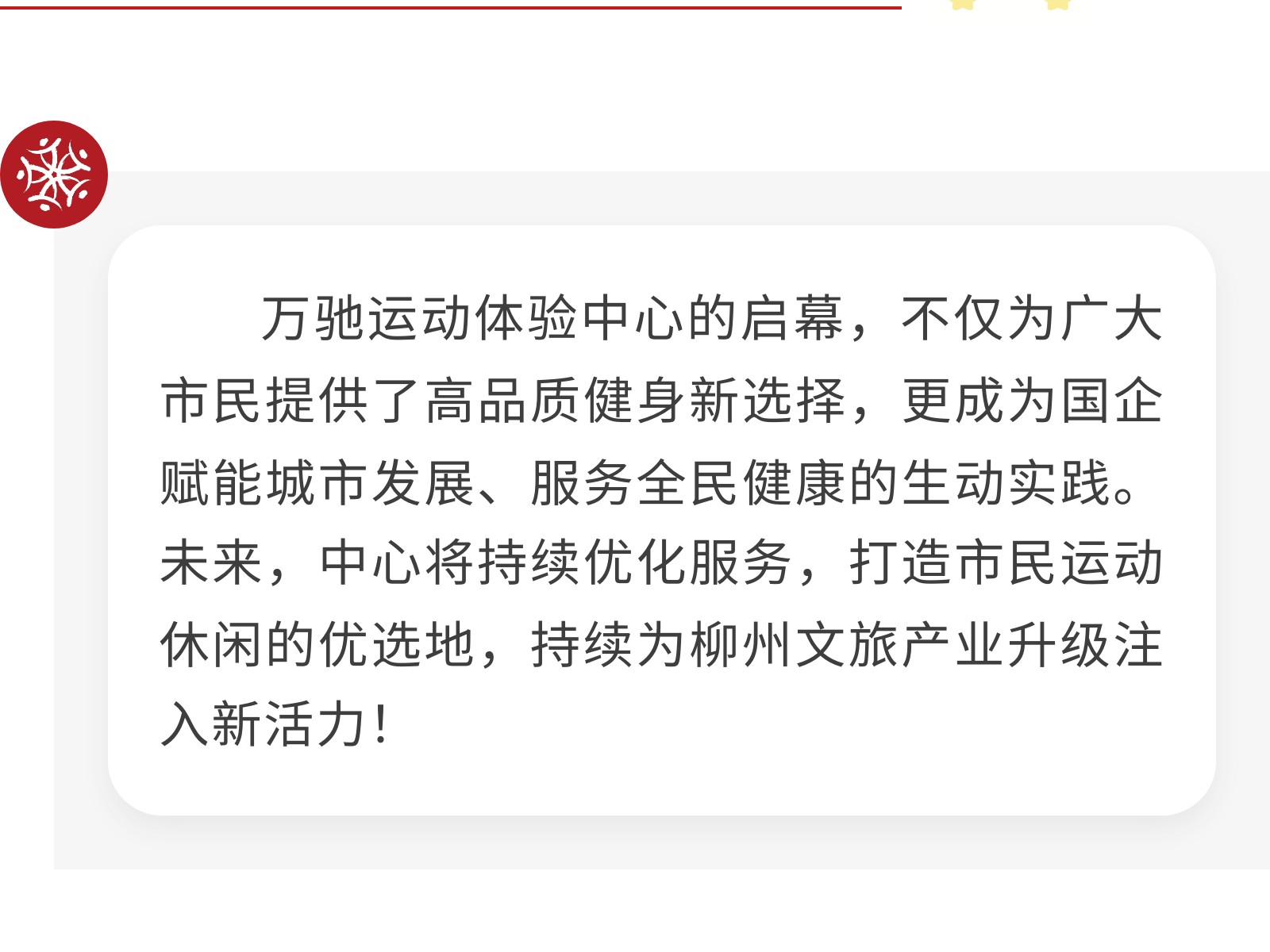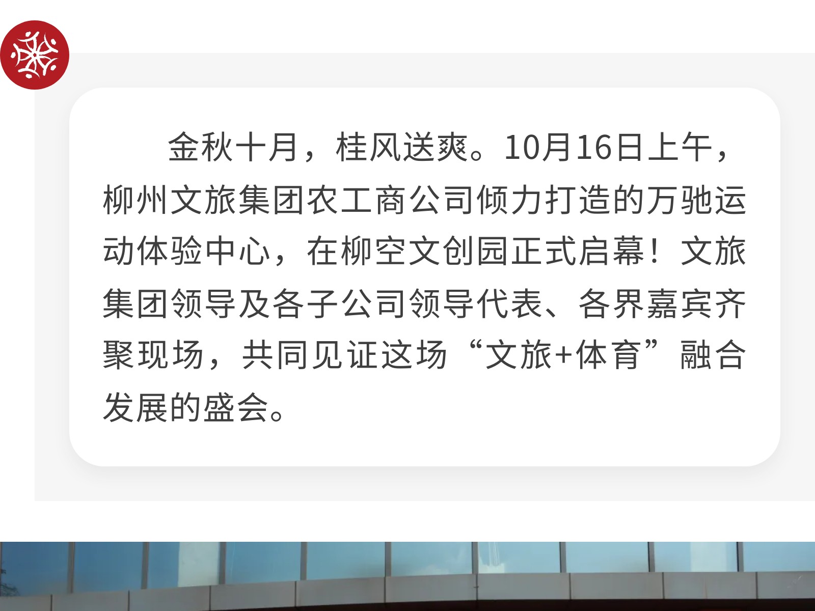【萬(wàn)序亨通,馳志青云】柳空文創(chuàng)園萬(wàn)馳運(yùn)動(dòng)體驗(yàn)中心啟幕儀式圓滿舉行! 發(fā)布時(shí)間:2025年10月16日 10時(shí)來(lái)源:本站原創(chuàng)瀏覽:13 人次